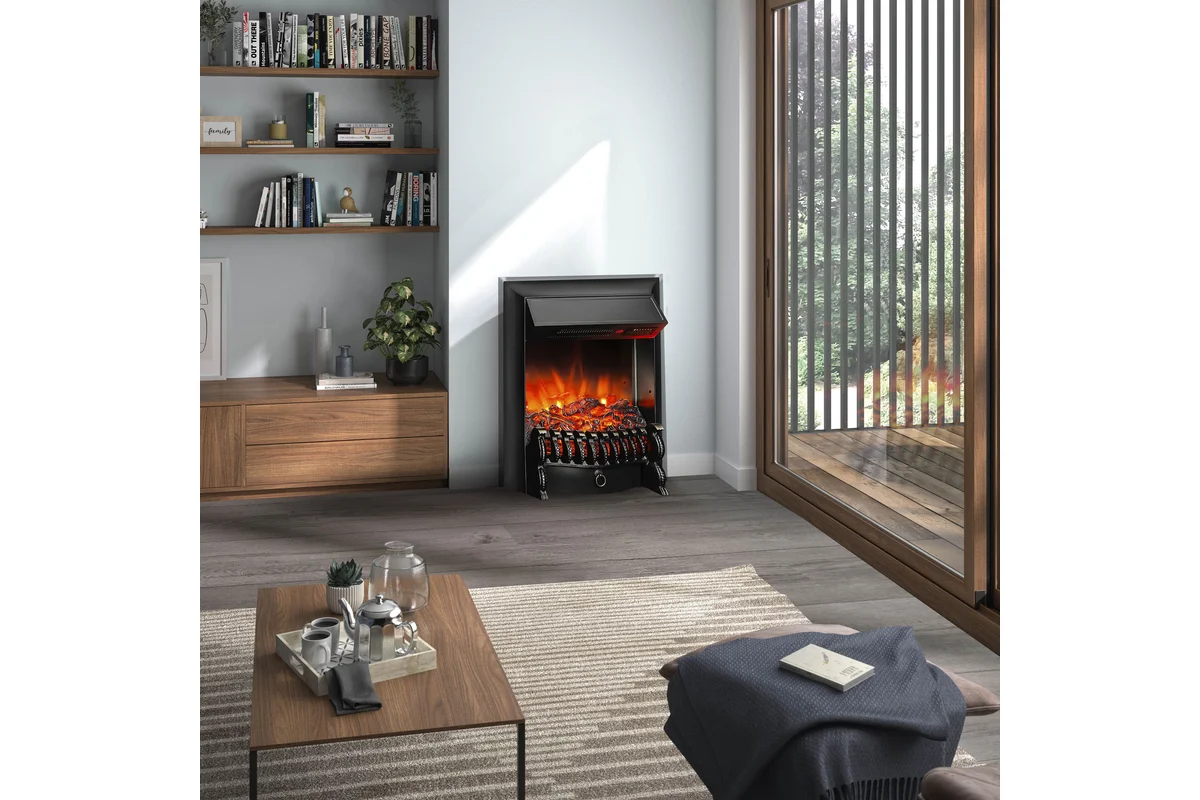 Электроочаг RealFlame Fobos-s lux BL идеально подходит для встраивания в компактные порталы и небольшие ниши в стене.
