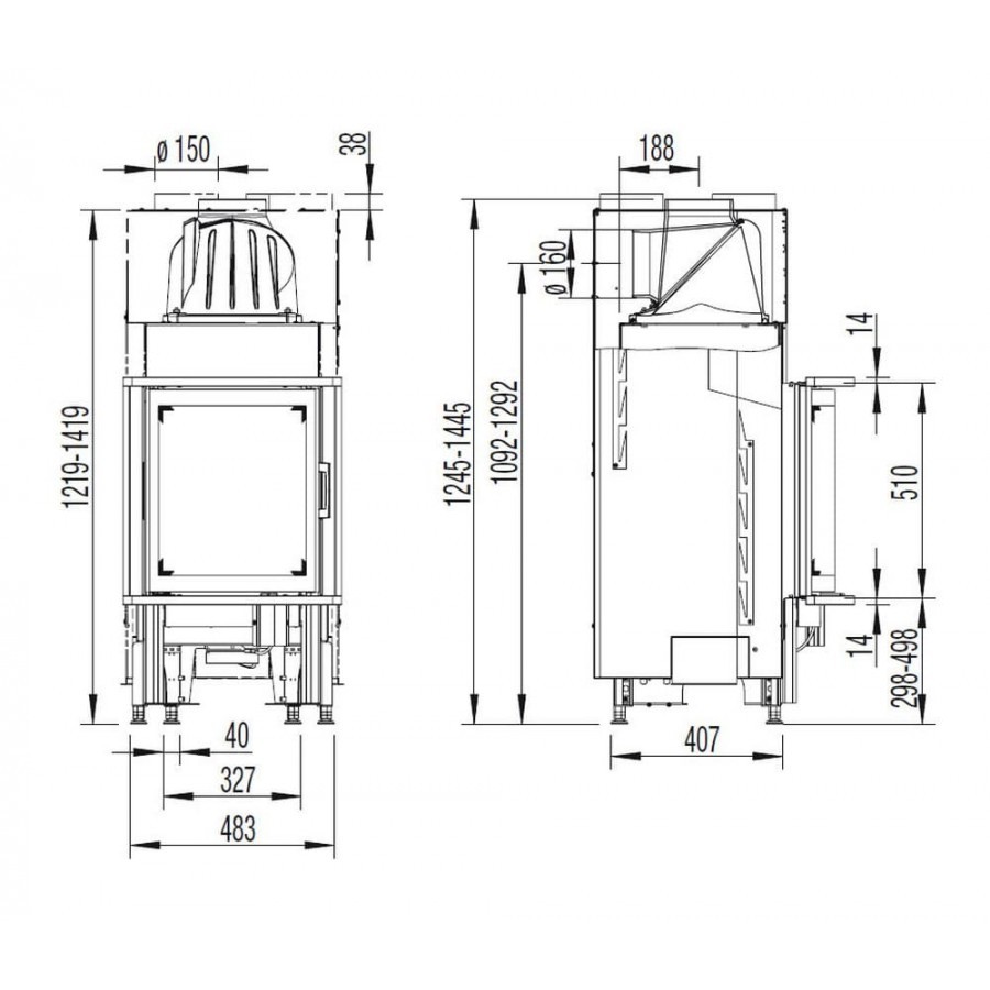 | Диаметр дымохода | 150 |