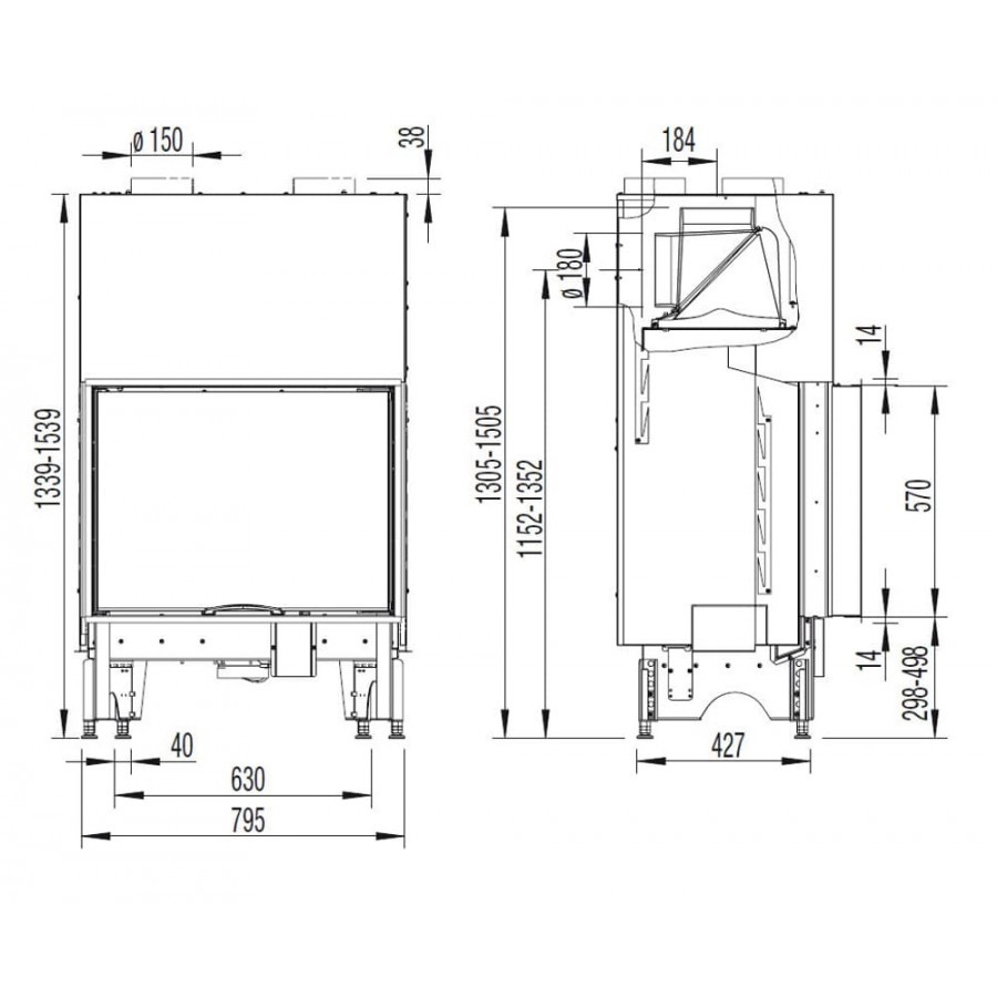 Топка-камин Austroflamm 75x57 S 2.0 подъёмный механизм, плоское стекло