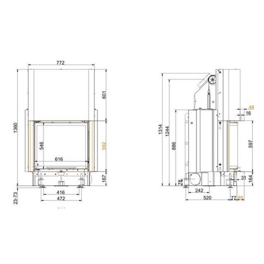 Топка-камин Brunner Kompakt-Kamine 57/67 радиусное стекло, подъемный механизм вверх