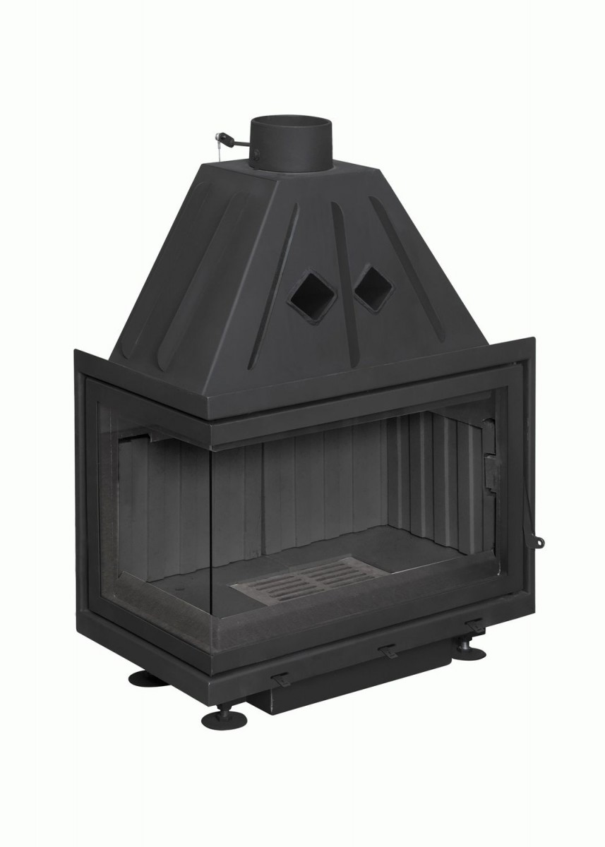 Каминная топка Экокамин Альфа 700 L два стекла левая чёрный шамот для помещения до 110 м2, дымоход 200 мм, гарантия 3 года