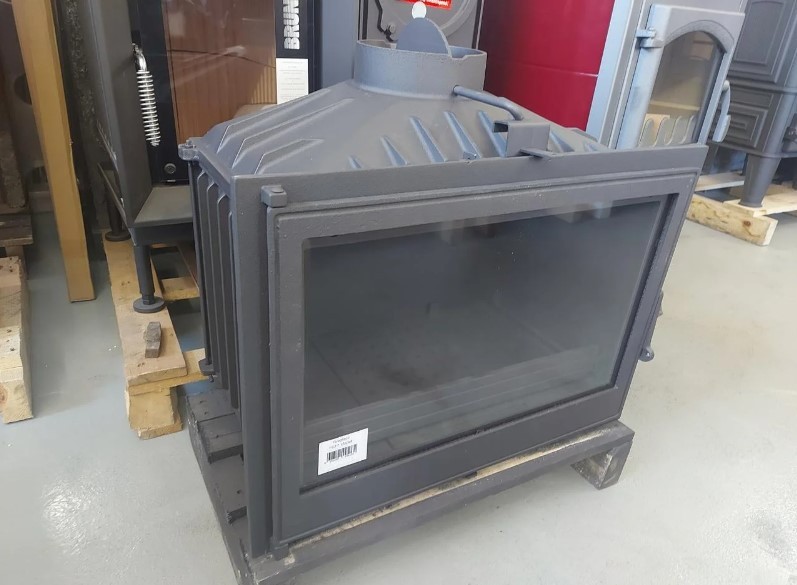 Чугунная дверца топки имеет узкие рамки, благодаря чему топка имеет термостойкое стекло большого размера диагональю 62см, что является одним из лучших показателей в классе.