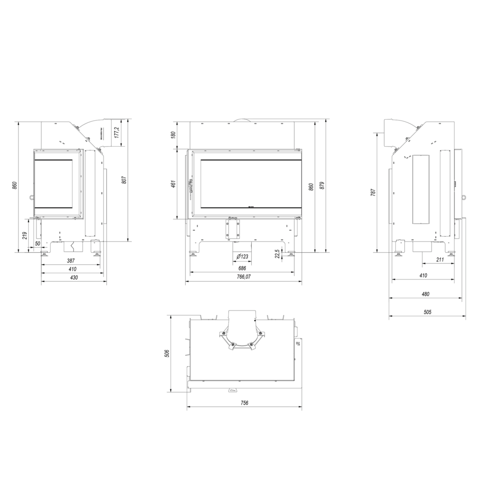 Каминная топка ILDNORD MALMO P правая, мощность 11 кВт, Г-образное остекление, дымоход 180 мм, гарантия 5 лет