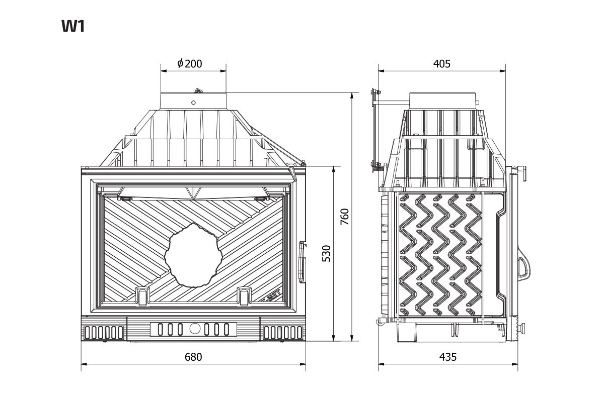 Классическая каминная топка W1 18 кВт с отличными характеристиками, большой мощностью и великолепной ценой, используется для отопления помещений как качественный дизайнерский отопительный прибор, а также как предмет интерьера. Жаростойкая плита в задней части топки декорирована фениксом или гербом со львом на выбор. Каминная топка W1-18 кВт является классической топкой премиум класса производимой заводом KAWMET многие годы, топка выполнена из толстого чугуна класса EN-GJL- 200 и оборудована подводом наружного воздуха в камеру сгорания, встроенным шибером для регулировки процесса горения и дымоотведения, и более точной регулировкой подачи воздуха через нижнюю часть дверцы под колосниковую решетку, открыв ее на максимум, вы подаете к дровам оптимальное количество воздуха для быстрого розжига.