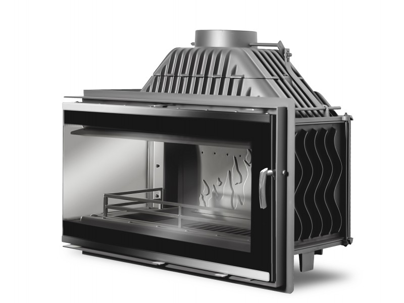 Каминная топка W16 LB с угловым левым стеклом без рамы (14.7 kW) с отличными характеристиками и великолепной ценой, используется для отопления помещений, а также как предмет интерьера. Выполнена из чугуна класса EN-GJL- 200, представляет собой качественный дизайнерский отопительный прибор. Система подачи наружного воздуха на главное стекло с регулировкой, подавая воздух на внутреннюю сторону стекла, вы, тем самым, создаете направленный поток, который будет препятствовать оседанию сажи, стекло значительно дольше будет оставаться чистым, чтобы вы наслаждались игрой живого укрощенного огня. Стекло дверцы увеличено и закрывает всю рамку рамку дверцы, верх и низ стекла декорирован нержавейкой (серебро), что визуально подчёркивает ширину стекла и безрамность конструкции дверцы.