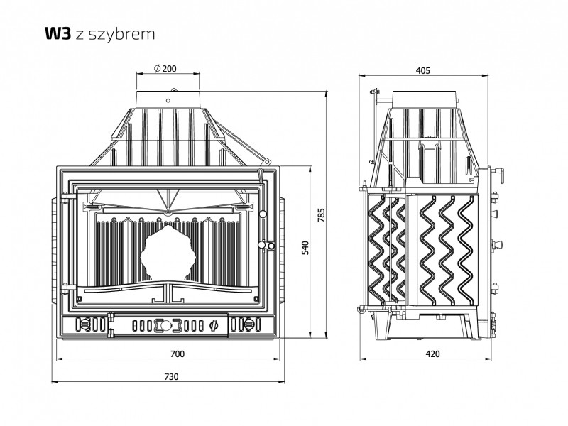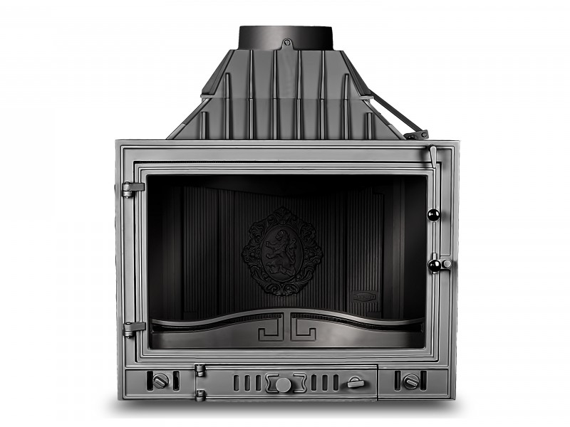 Классическая каминная топка W3 16,7 кВт это топка с увеличенным по высоте стеклом и высокой мощностью, используется для отопления помещений как качественный дизайнерский отопительный прибор, а также как предмет интерьера. Жаростойкая плита в задней части топки декорирована гербом со львом. Каминная топка W3-16,7 кВт является классической топкой производимой заводом KAWMET многие годы, топка выполнена из толстого чугуна класса EN-GJL- 200 и оборудована подводом наружного воздуха в камеру сгорания, встроенным шибером для регулировки процесса горения и дымоотведения, более точной регулировкой подачи воздуха через нижнюю часть дверцы под колосниковую решетку, открыв ее на максимум, вы подаете к дровам оптимальное количество воздуха для быстрого розжига. В дополнение на рамке топки устроены регулируемые конвекционные отверстия. Благодаря этим отверстиям воздух постоянно проникает в короб камина и конвекция происходит гораздо быстрее.