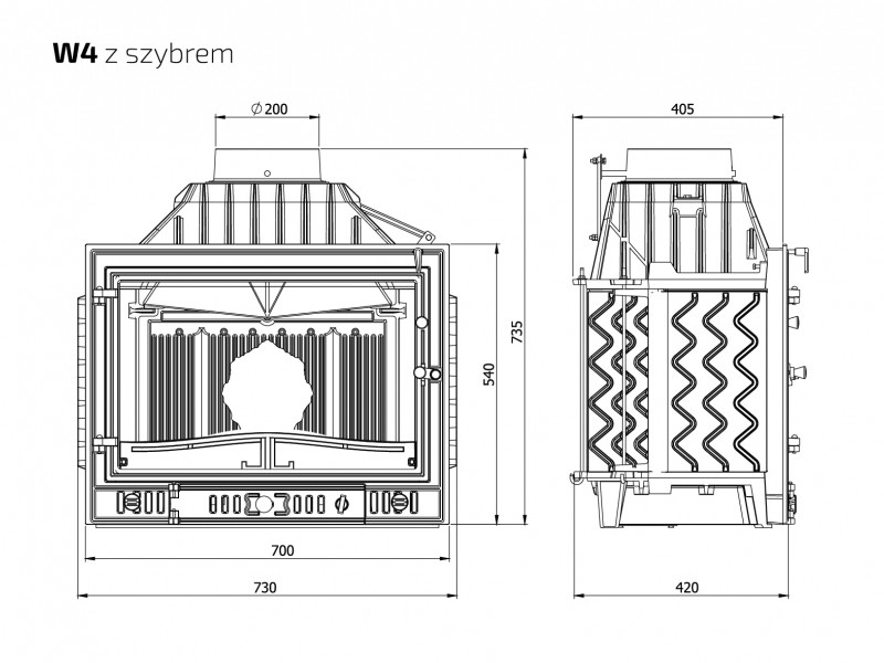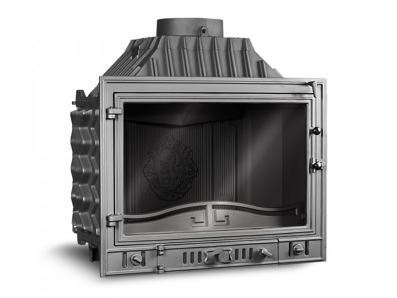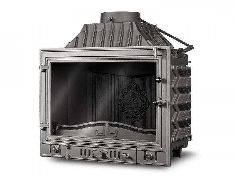Классическая каминная топка W4 14,5 кВт это аналог топки W3 с уменьшенной мощностью, используется для отопления помещений как качественный дизайнерский отопительный прибор, а также как предмет интерьера. Жаростойкая плита в задней части топки декорирована гербом со львом. Каминная топка W4-14,5 кВт является классической топкой производимой заводом KAWMET многие годы, топка выполнена из толстого чугуна класса EN-GJL- 200 и оборудована подводом наружного воздуха в камеру сгорания, встроенным шибером для регулировки процесса горения и дымоотведения, более точной регулировкой подачи воздуха через нижнюю часть дверцы под колосниковую решетку, открыв ее на максимум, вы подаете к дровам оптимальное количество воздуха для быстрого розжига. В дополнение на рамке топки устроены регулируемые конвекционные отверстия. Благодаря этим отверстиям воздух постоянно проникает в короб камина и конвекция происходит гораздо быстрее. Завесы и запирание дверцы в классическом каминном стиле.