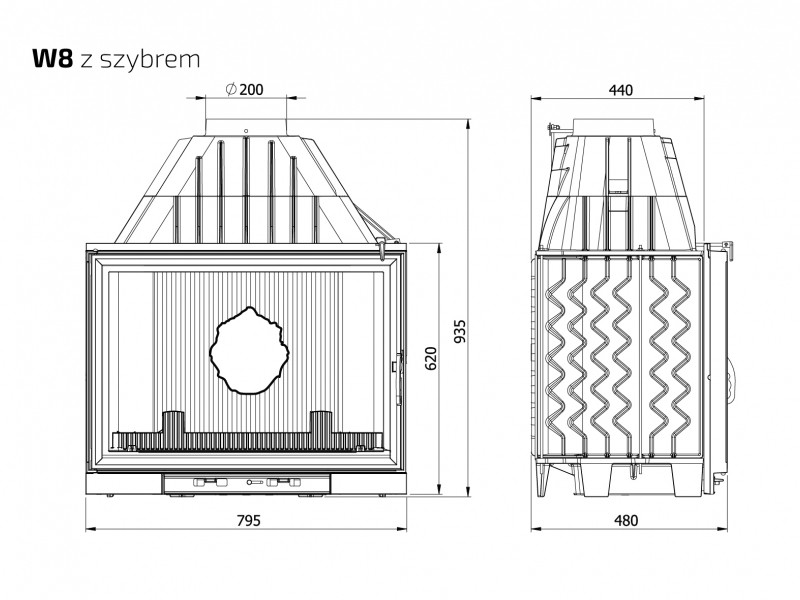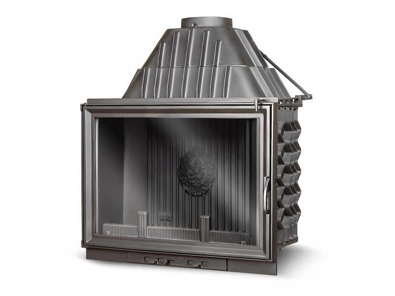 Каминная топка KAWMET W8 (17.5 кВт) EKO это самая мощная из конвекционных топок KAWMET, с отличными характеристиками, самым высоким стеклом (расстояние от нижней части топки до верхней рамки стекла составляет 620 мм) и великолепной ценой Используется для отопления помещений как качественный дизайнерский отопительный прибор, а также как предмет интерьера. Жаростойкая плита в задней части топки декорирована гербом со львом. Каминная топка W8-17.5 кВт EKO является классической топкой премиум класса производимой заводом KAWMET по современным технологиям, топка выполнена из толстого чугуна класса EN-GJL- 200 и оборудована подводом наружного воздуха в камеру сгорания, встроенным шибером для регулировки процесса горения и дымоотведения, и более точной регулировкой подачи воздуха через нижнюю часть дверцы под колосниковую решетку, открыв ее на максимум, вы подаете к дровам оптимальное количество воздуха для быстрого розжига.