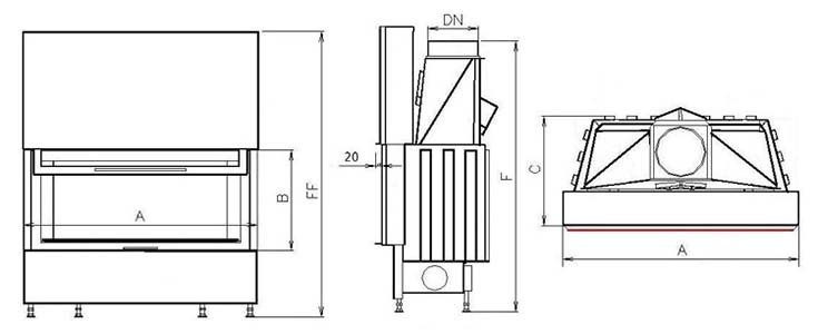 Внутри каминная топка защищена толстыми шамотными элементами, а конструкция корпуса выполнена таким образом, чтобы не было коробления металла при нагревании. У KOBOK Chopok L 73, VD 800×570 чугунные колосник и горловина дымохода. Регулируемые ножки – позволяют установить камин четко по уровню. Имеется патрубок подвода внешнего воздуха.Зольный ящик удобно извлекается.