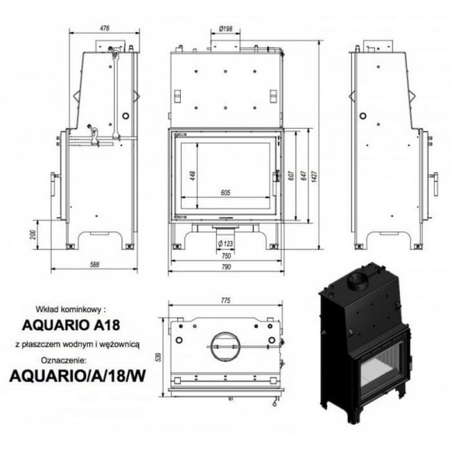 Топка-камин Kratki AQUARIO/A/18/PW/W