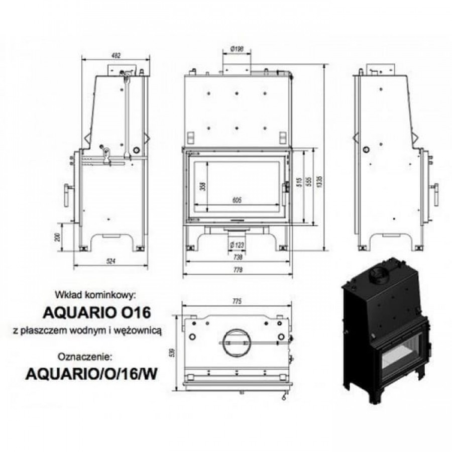 Топка-камин Kratki AQUARIO/O/16/PW/W