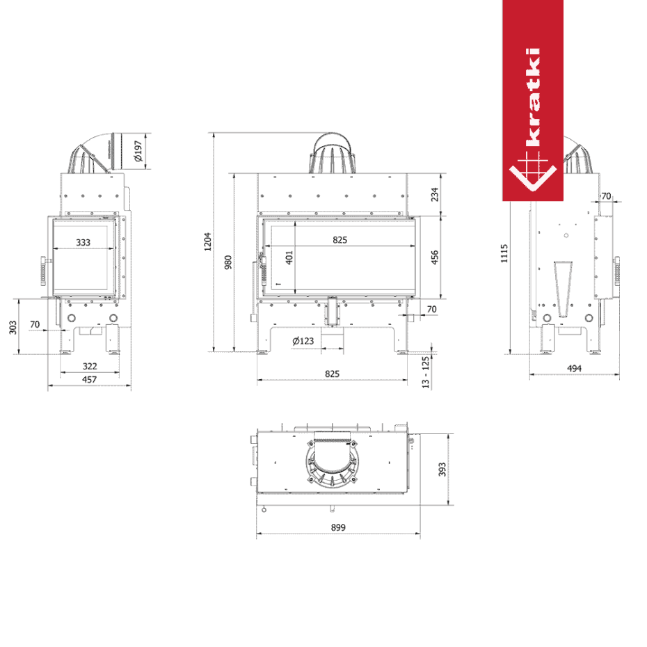 Каминная топка Kratki FLOKI L правая 12кВт O200 черный thermotec.