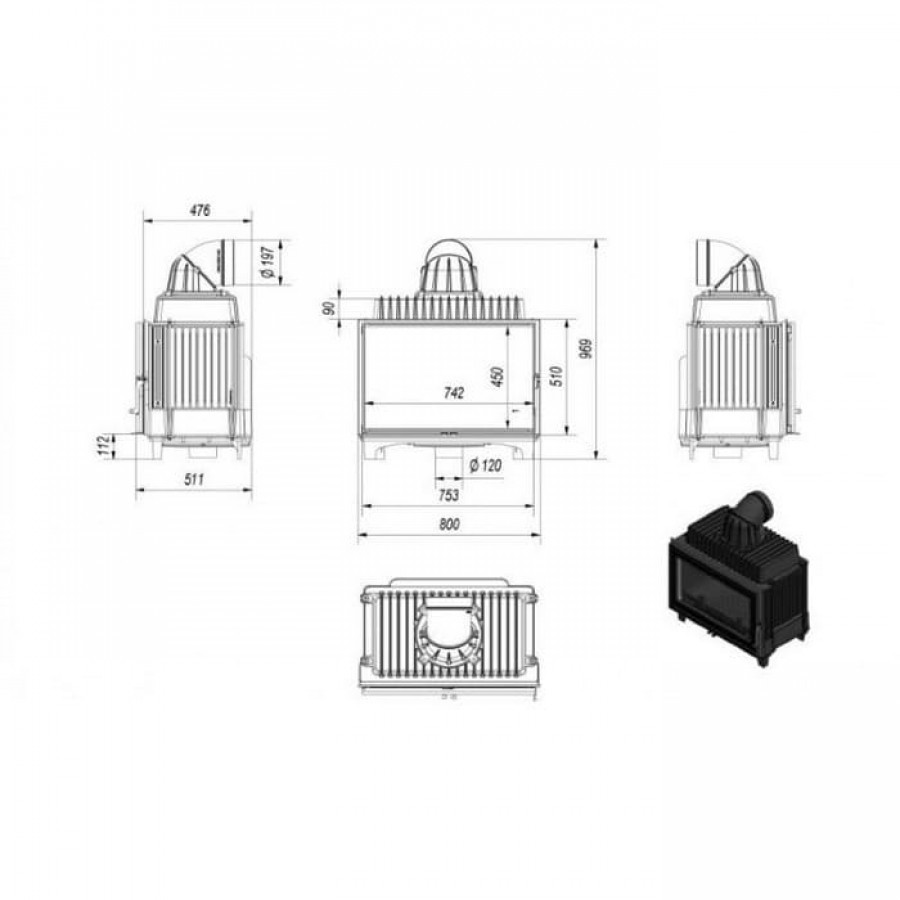 | Выход дымохода | Сверху / Сзади |