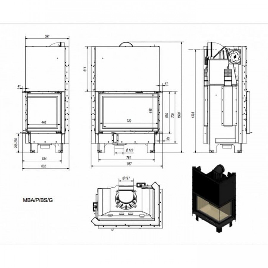| Выход дымохода | Сверху / Сзади |