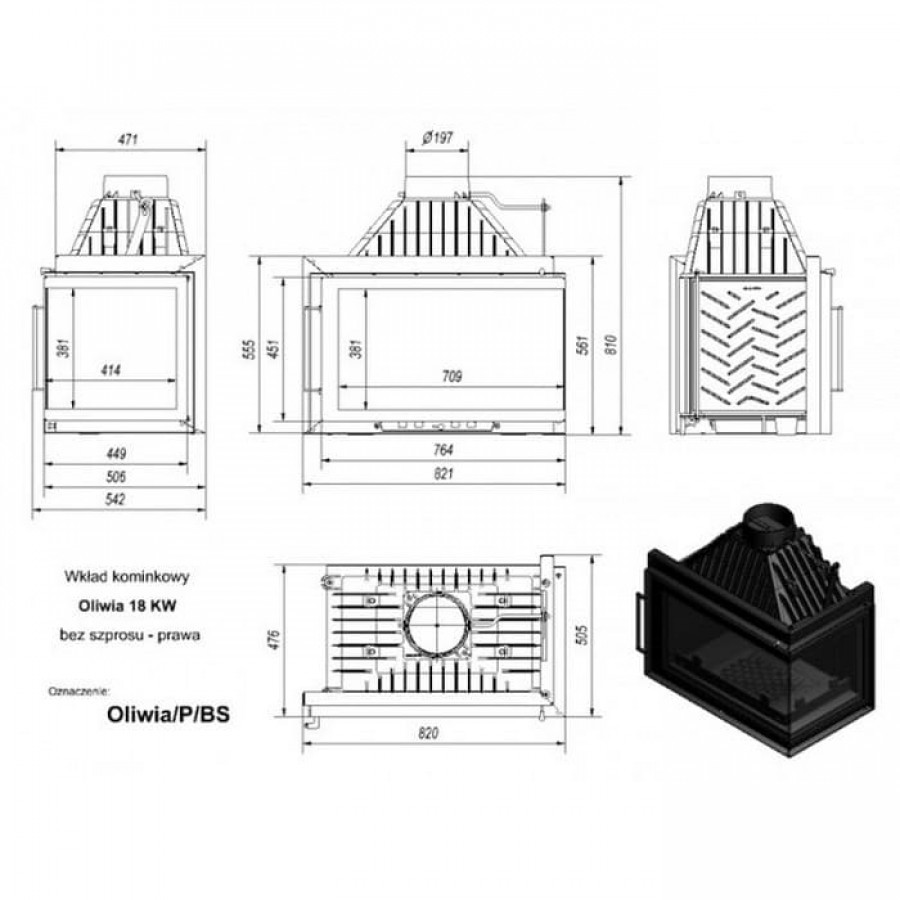 Топка-камин Kratki Oliwia/P/BS (угловое стекло справа)