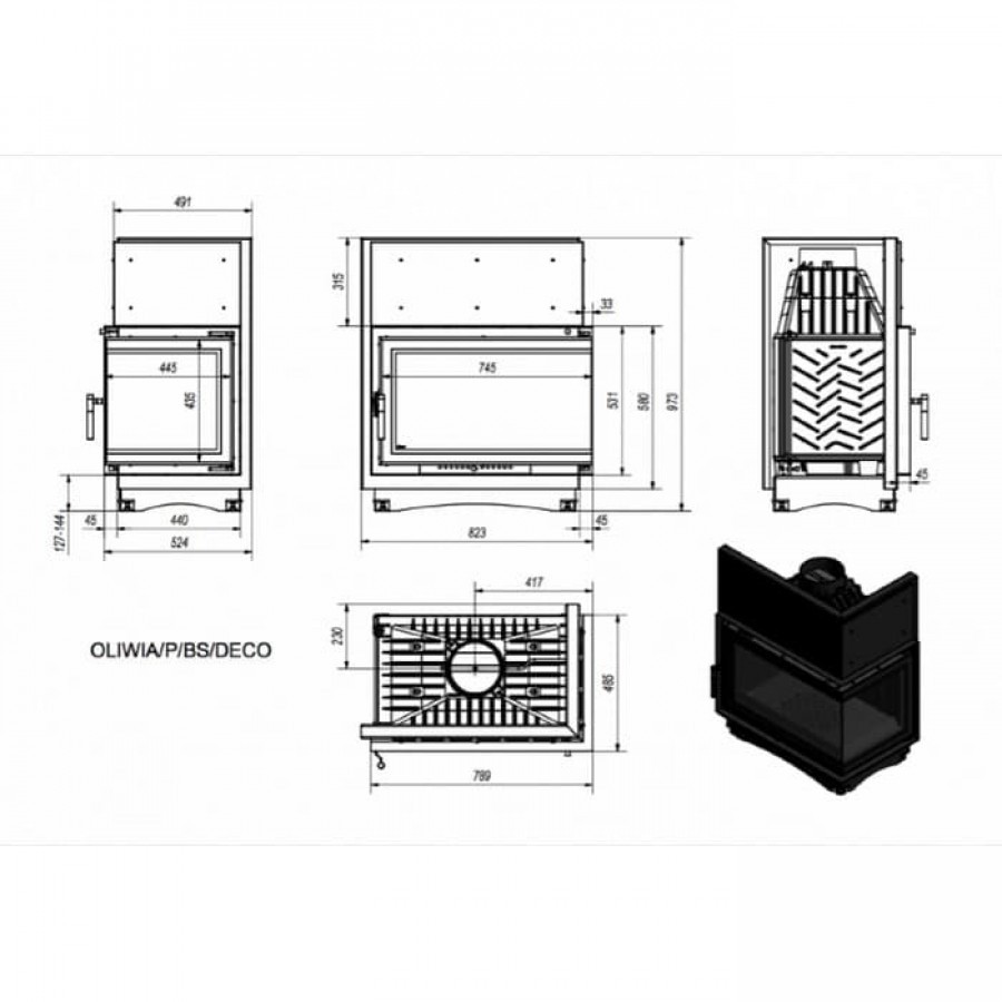 Топка-камин Kratki Oliwia/P/BS/Deco