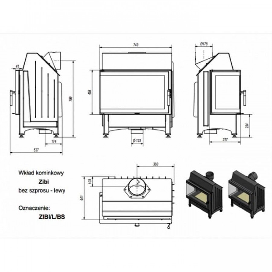 Топка-камин Kratki Zibi/L/BS (угловое стекло слева)