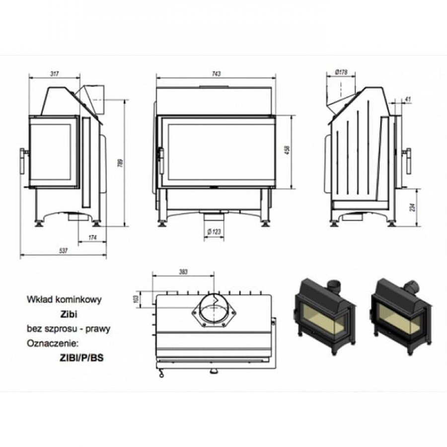 Топка-камин Kratki Zibi/P/BS (угловое стекло справа)