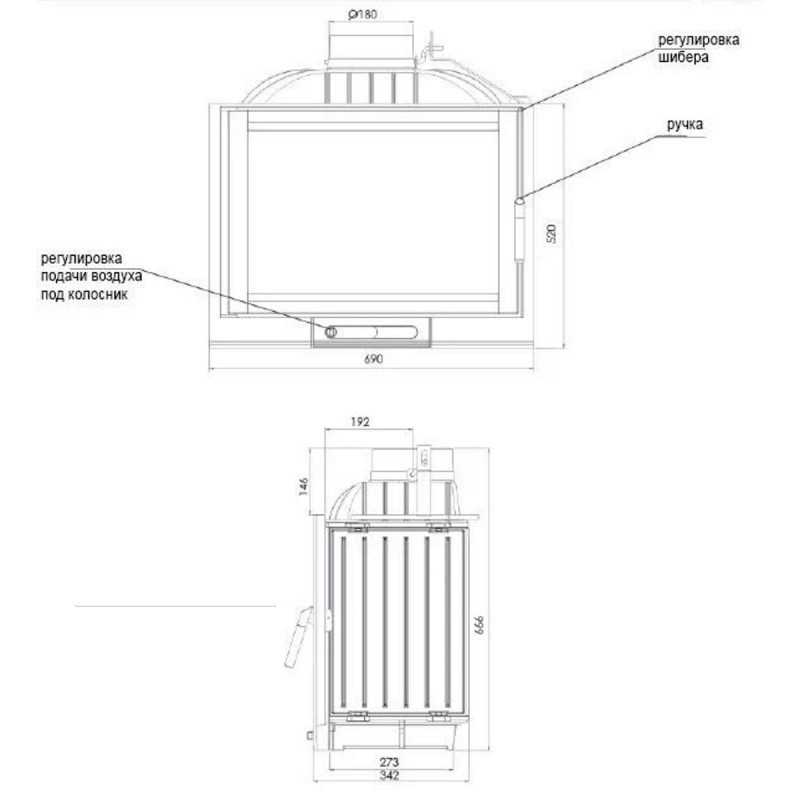 Nordflam Capri EKO укомплектована чугунной колосниковой решеткой и зольным ящиком, а на фасаде топки расположена стильная заслонка первичной подачи воздуха под колосник. Ручка у каминной топки очень удобная, на нее нанесено специальное термостойкое покрытие, которое приятное на ощупь и очень хорошо смотрится. Механизм закрывания классический рычажного типа, самый надежный и проверенный годами.
