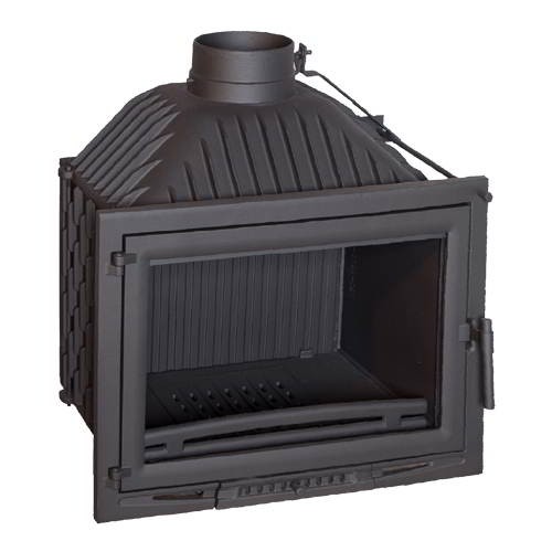 Каминная топка Nordflam Rodano изготовлена из чугуна. Отбойник (верхний зуб или дефлектор) выполнен из вермикулита, что позволяет, увеличить температуру внутри топочной камеры, тем самым способствуя более полному сгоранию дров, увеличению КПД, и, что самое важное, лучшему выгоранию сажи со стекла. Также дефлектор продлевает путь дымовых газов, увеличивая теплоотдачу от камина в помещение.