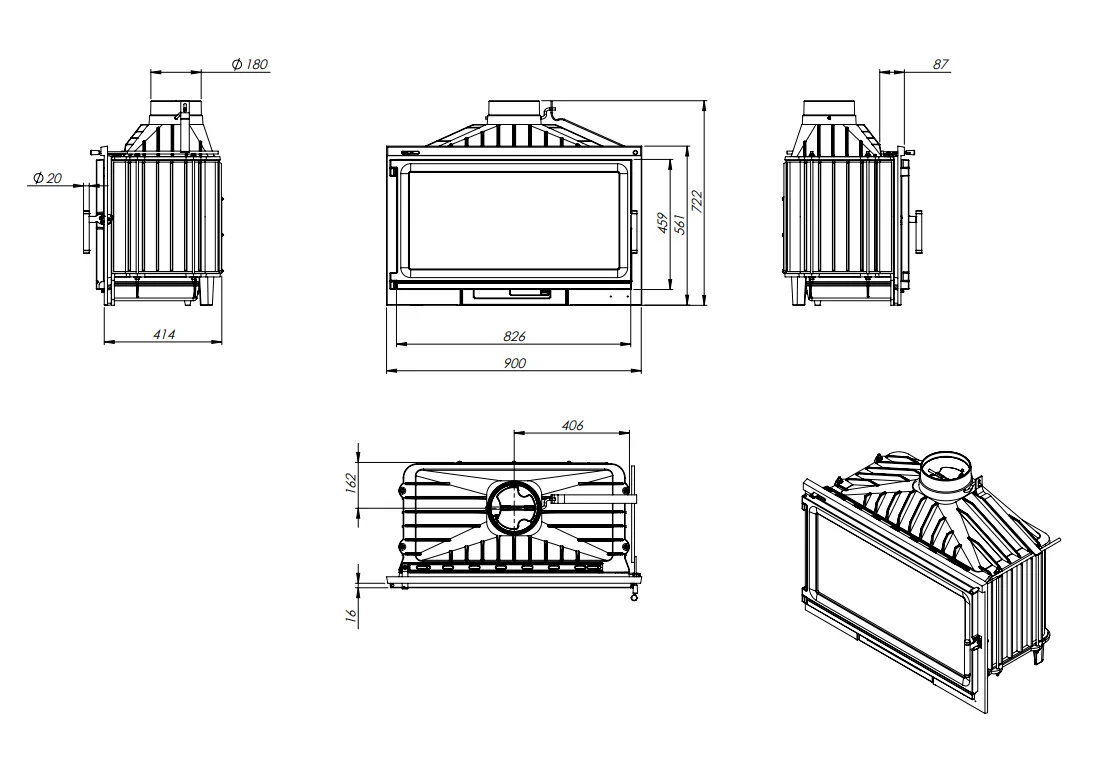 | Диаметр дымохода (мм) | 180 |