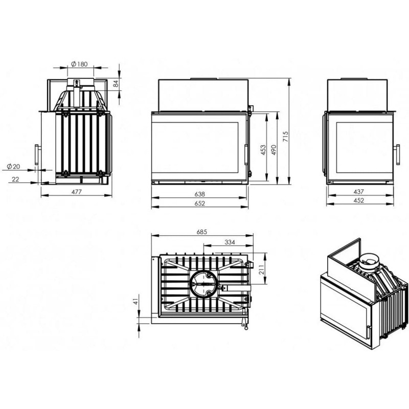 Каминная топка NORDflam Torn left мощность 12 кВт, дымоход 180 мм, гарантия 5 лет