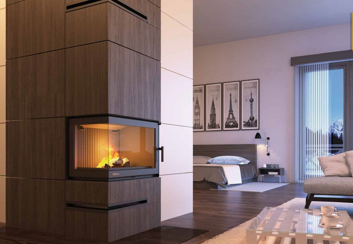 Каминная топка NORDflam Trent EKO левая мощность 12 кВт, дымоход 180 мм.