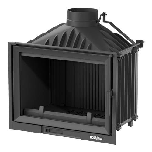 Nordflam Trent EKO укомплектована чугунной колосниковой решеткой и зольным ящиком, а на фасаде топки расположена стильная заслонка первичной подачи воздуха под колосник. Ручка у каминной топки очень удобная, на нее нанесено специальное термостойкое покрытие, которое приятное на ощупь и очень хорошо смотрится. Механизм закрывания классический рычажного типа, самый надежный и проверенный годами.