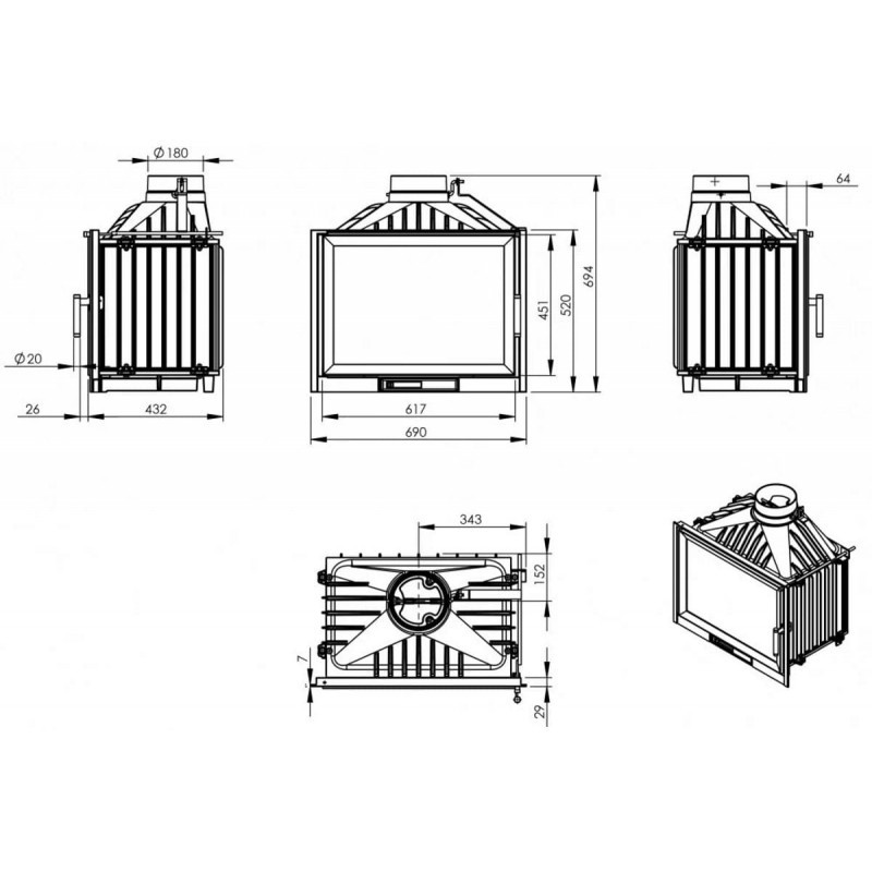 Топка Trent EKO укомплектована шибером для лучшей регулировки процесса горения, а также для предотвращения выхода тепла в дымоход. Есть возможность подключения адаптера подвода внешнего воздуха. Тыльная сторона токпи Trent EKO оснащена двойной чугунной стенкой. Задняя стенка у каминных топок подвержена максимальной термической нагрузке. Дополнительная сменная внутренняя чугунная пластина защищает основной корпус топки от разрушения при чрезмерных нагрузках.