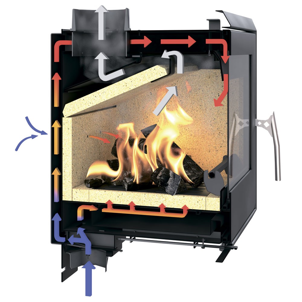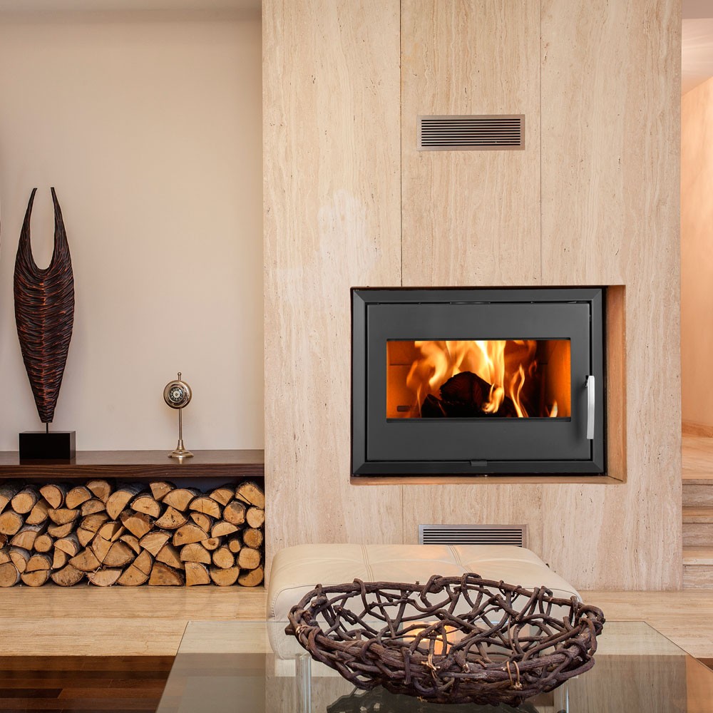 Каминная топка THORMA LANDSCAPE черная, мощность 11 кВт, материал корпуса - сталь, топка - вермикулит, площадь отопления 70 м2, вторичный дожиг, вес 110 кг