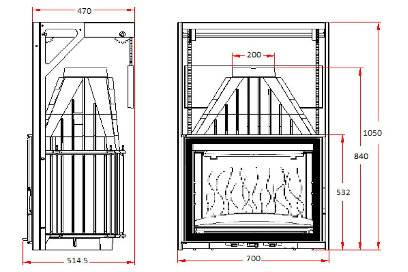 Топка Invicta 700 Grand Angle с подъёмом мощность 14 кВт, дымоход 200 мм, гарантия 5 лет