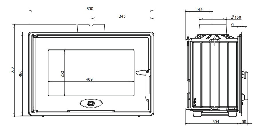 Топка Invicta 700 Optimisé с шибером мощность 8 кВт, дымоход 150 мм, гарантия 5 лет