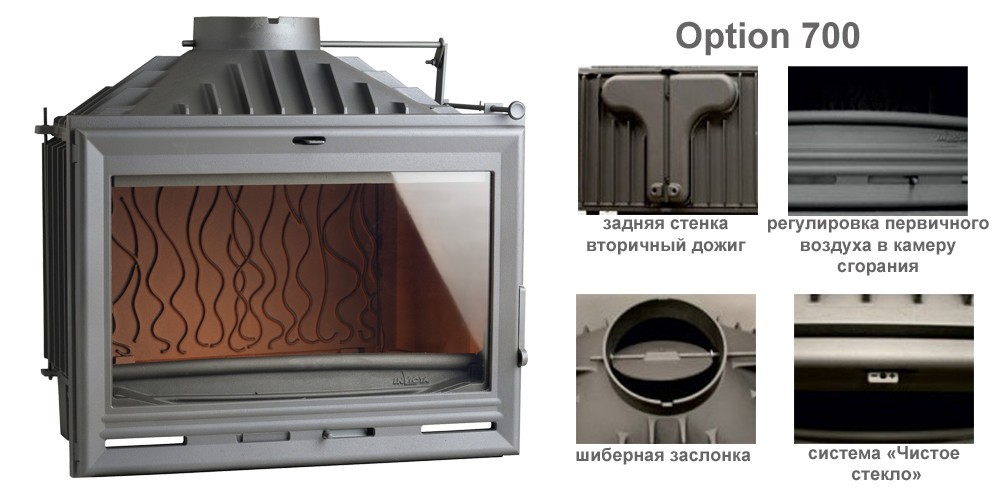 Топка Invicta 700 Option с шибером мощность 12 кВт, дымоход 200 мм, гарантия 5 лет