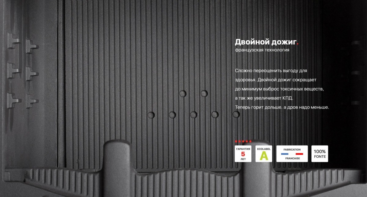 В бюджетном сегменте у Promo 700 очень сильные позиции именно из-за качества изготовления и надежности конструкции. Аналогичные производители из восточноевропейских стран в первую очередь не могут похвастаться качеством литья чугуна и наличием двойной задней стенки, которая гарантирует долговечность корпусу. Отсюда, как правило, большая масса камина французского производителя при сопоставимых размерах у конкурентов. В этом году конструкция камина Promo 700 претерпела ряд изменений: