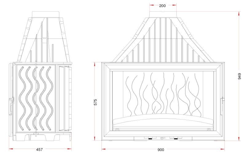 Топка Invicta 900 Grand Vision с подъёмом мощность 18 кВт, дымоход 200 мм, гарантия 5 лет