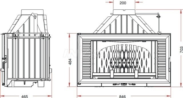 Чугунная каминная топка INVICTA 840 Horizontal с шибером 9284-75 оснащена выдвижным зольным ящиком, высоким дымосборником и боковым открыванием дверцы. Топка дополнительно оборудована встроенной заслонкой для регулировки тяги (шибер). Хорошое соотношение цены и качества. Подойдет для любого оформления камина.
