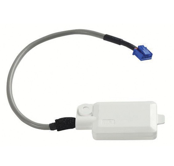 Модуль Wi-Fi выполнен в пластмассовом корпусе. Он позволяет управлять всеми функциями кондиционера с персонального устройсва через интернет из любой точки мира. Модуль монтируется на внутренний блок кондиционер. Для самостоятельного подключения вы должны соединить разъем,расположенный под лицевой панелью кондиционера,с разъемом на Wi-Fi модуле и установить сам модуль в специально отведенное место на корпусе внутреннего блока, закрепив саморезом.