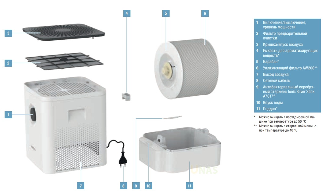 | Используемый принцип увлажнения воздуха | Инновационная запатентованная 3D губка с синтетическими волокнами |