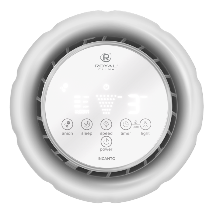 Мойка воздуха Royal Clima Incanto RAW-IN150/2.2E-WT белого цвета имеет компактные размеры и лаконичный дизайн, что позволит ей гармонично смотреться в любом интерьере. Она эффективно увлажняет и ионизирует воздух в помещении до 15 м². Для этого в корпусе устройства установлен увлажняющий элемент в виде дискового стержня. Для настройки нужных функций верхняя панель мойки воздуха снабжена сенсорными кнопками с подписями.