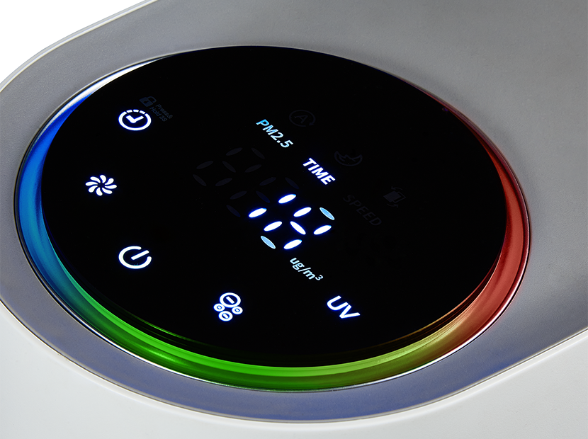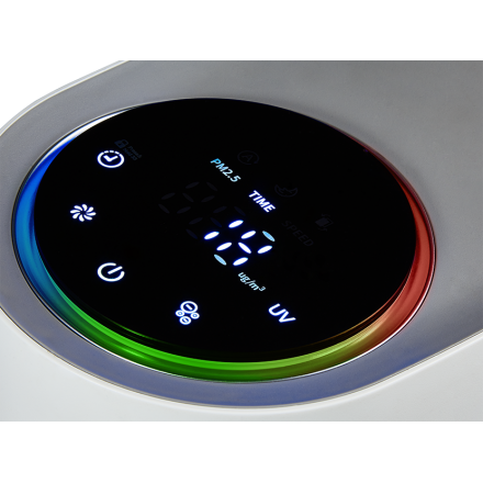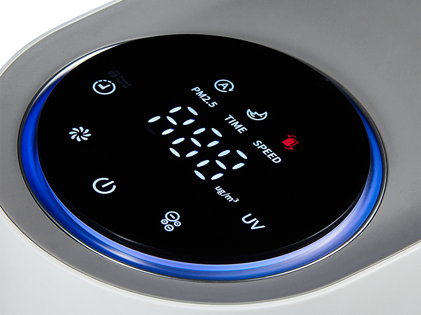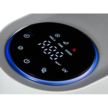Очиститель-обеззараживатель непрерывно измеряет количество PM 2.5, сканируя воздушное пространство. И при превышении концентрации опасных частиц автоматически включает самый мощный режим эффективной очистки.