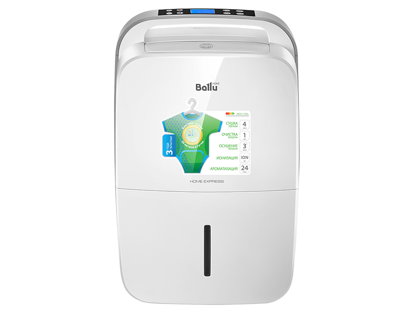 Сушильный мультикомплекс Ballu BD30MN представлен в белом с серебром корпусе, классический дизайн прибора сочетается с любым интерьером. Мощность моделей составляет 540 м³/час, что позволяет приборам собирать до 30 литров влаги в сутки. При производительности 30 л/сутки и мощности 540 Вт модель имеет высокий класс энергоэффективности. Благодаря встроенному таймеру на включение и выключение, прибор может работать, пока все в доме спят – потребляя электроэнергию в соответствии с экономным «ночным тарифом». При этом звук его работы составляет всего 45 дБ (А), а значит, не нарушит сна своих владельцев. Функция ионизации воздуха помогает провести профилактику простудных заболеваний и оздоровить воздух даже в закрытом помещении. Ее легко сочетать с ароматерапией – тем более что сушильный мультикомплекс Ballu оснащен специальной капсулой для аромамасел. Модель удобна в эксплуатации и перемещении, а обтекаемая форма корпуса без острых углов делает его безопасным для детей.