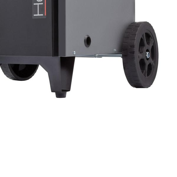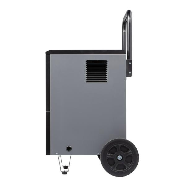 Осушитель способен за сутки устранить до 50 литров влаги, что оптимально подойдет для помещений площадью до 70 м². В конструкции также предусмотрены мощные шасси и удобная металлическая ручка, что улучшает мобильность прибора при ремонте многоэтажных зданий.