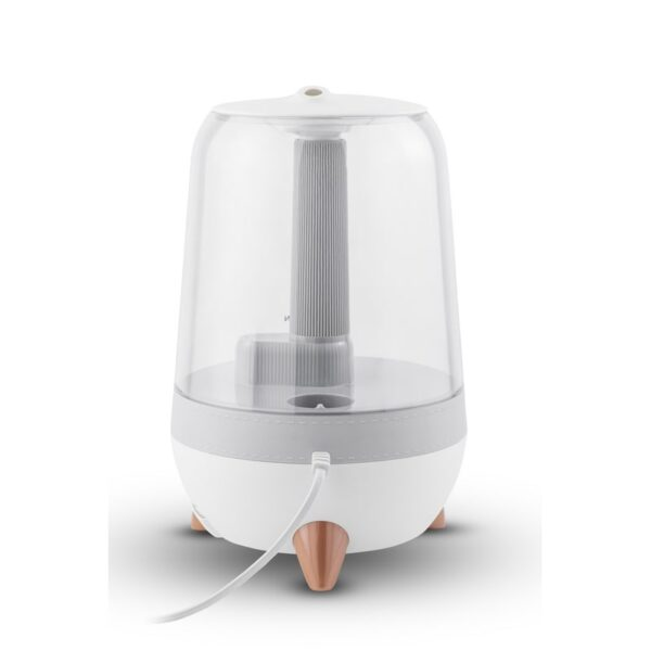Прибор безопасен в использовании. Выделяемый при работе пар — холодный. Большой керамический фильтр продлит срок эксплуатации увлажнителя. Ну а если вода в резервуаре закончится, то автоматически сработает система защиты.