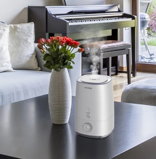 Увлажнитель воздуха Hyundai Tulip H-HU8M-4.0-UI184, ультразвуковой, помещение до 30 м², производительность 300 мл/ч, резервуар 4.5 л, цвет белый