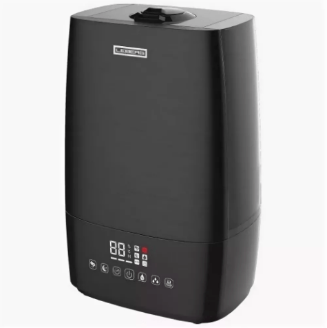 Увлажнитель воздуха Leberg LH-803B с электронным управлением, ультразвуковой, помещение до 40 м², производительность 400 мл/ч, резервуар 5 л, гигростат, ионизация, шум 35 дБ, цвет серебристый