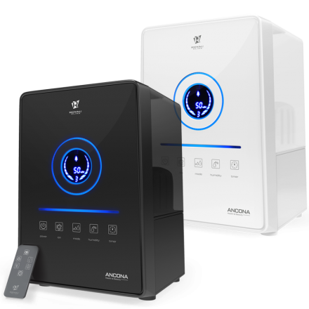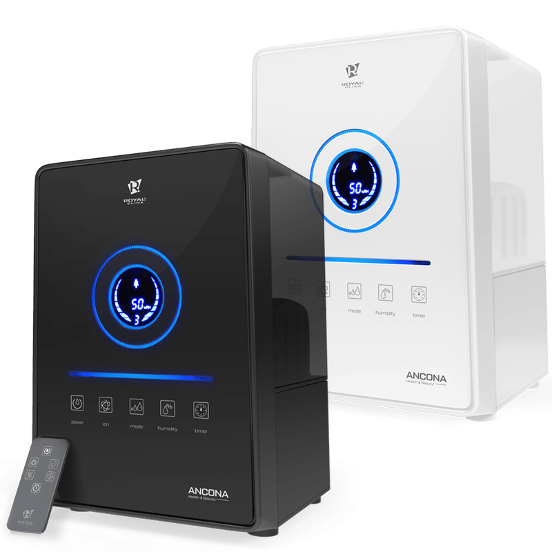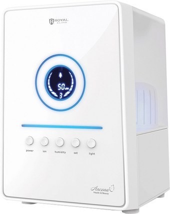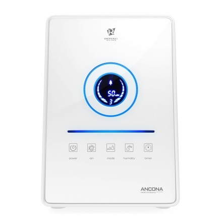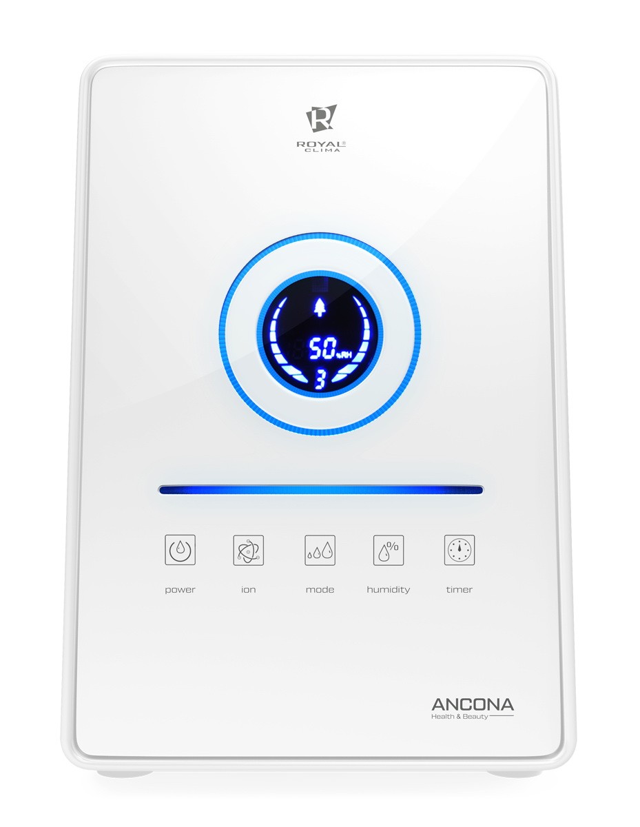 Royal Clima Ancona Bianco Satinato это не только увлажнитель воздуха, но и полноценный ионизатор, гигростат с индикацией текущего и установленного уровня влажности в диапазоне от 45 до 90 %, а также отключаемая ночная лампа мягкого света.