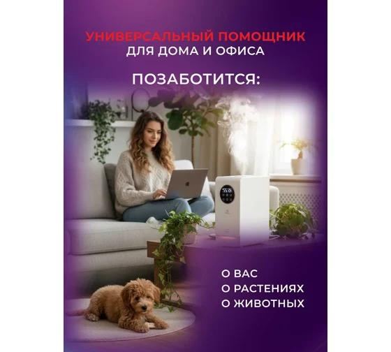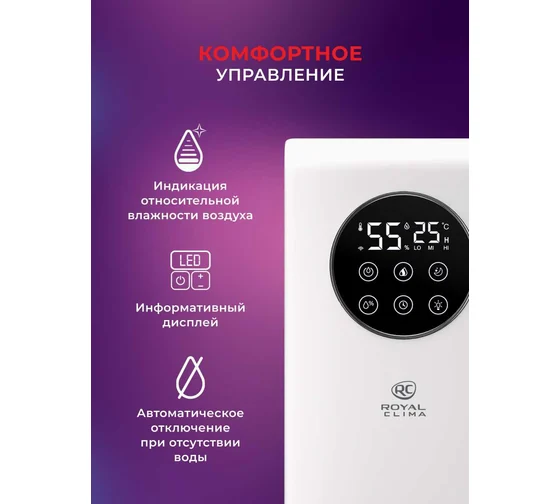Увлажнитель воздуха VOLPE RUH-VP270/6.5E-WT от ROYAL CLIMA создаст комфортный микроклимат в вашем доме. Комфортное управление прибором благодаря Wi-Fi, приложение SmartLife.