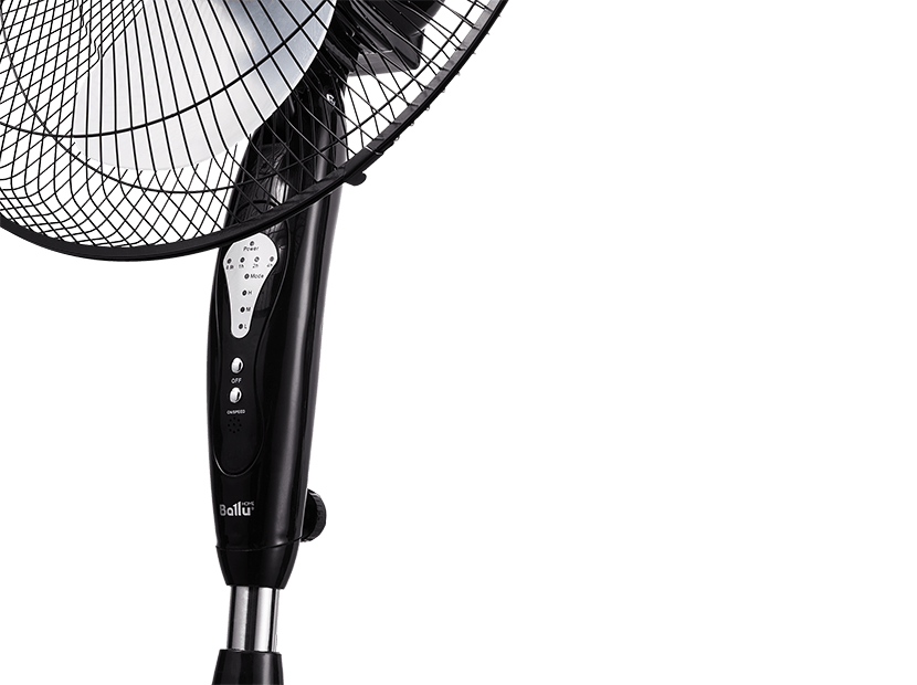 Напольный вентилятор Ballu BFF-855 – прибор, управлять которым максимально удобно. Его работу легко регулировать с помощью пульта дистанционного управления, таймера на 7,5 часов, трех режимов мощности и индикативной панели. Угол потока воздуха можно регулировать в радиусе 45°, а уровень шума равен всего 35 Дб. Устойчивое широкое крестообразное основание предотвращает возможность опрокидывания прибора.