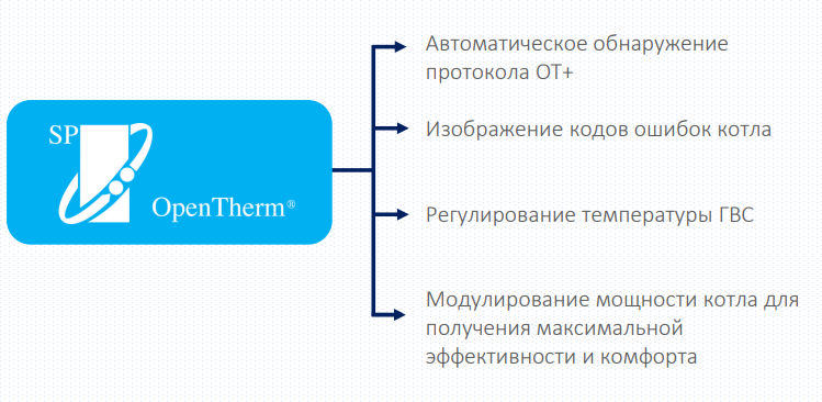 | Vokera | Evolve C Evolve S Linea One (via OpenTherm Kit Part_1221179) Vision Combi (requires control interface 294501430 Compact A (requires control interface 29450143) Verve (только режим нагрева) Mynute i (только режим нагрева) Vision System (только режим нагрева) Unica i Vibe Vision C Linea HE Mynute A Mynute HE Unica HE |