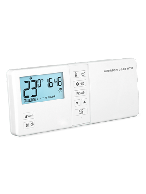 Беспроводной недельный регулятор температуры Auraton 2030 R для сервопривода, диапазон регулировки температуры: от 5 до 30 °С, дисплей